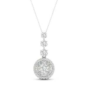 Multi-Diamond Drop Necklace 2 ct tw Round & Marquise-cut 14K White Gold 18″