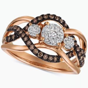 A trinity of round-shape white diamond clusters sits atop an openwork round-shape chocolate diamond accented shank to create this stunning ring (3/8 ct. t.w.) designed.