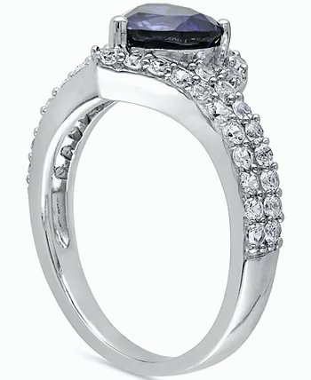 Blue Sapphire (1-7/8 ct. t.w.) & White Sapphire (1-7/8 ct. t.w.) Heart Swirl Ring in Sterling Silver