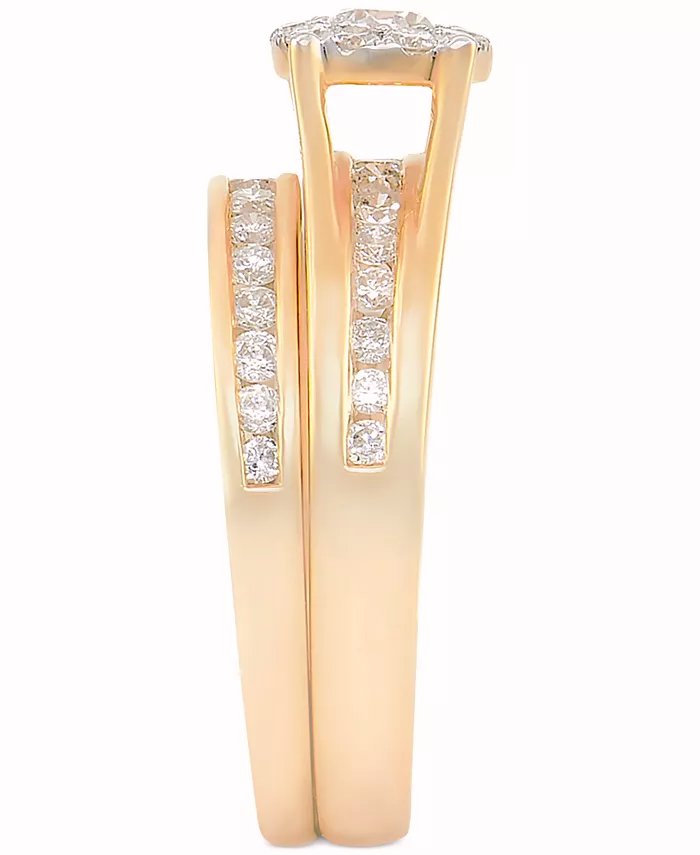 It’s all about the elegance with this romantic round-cut diamond bridal set (1 ct. t.w.) featuring a stunning engagement ring and matching wedding band adorned with channel-set diamonds. Crafted of 14k white, yellow or rose gold.